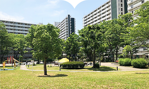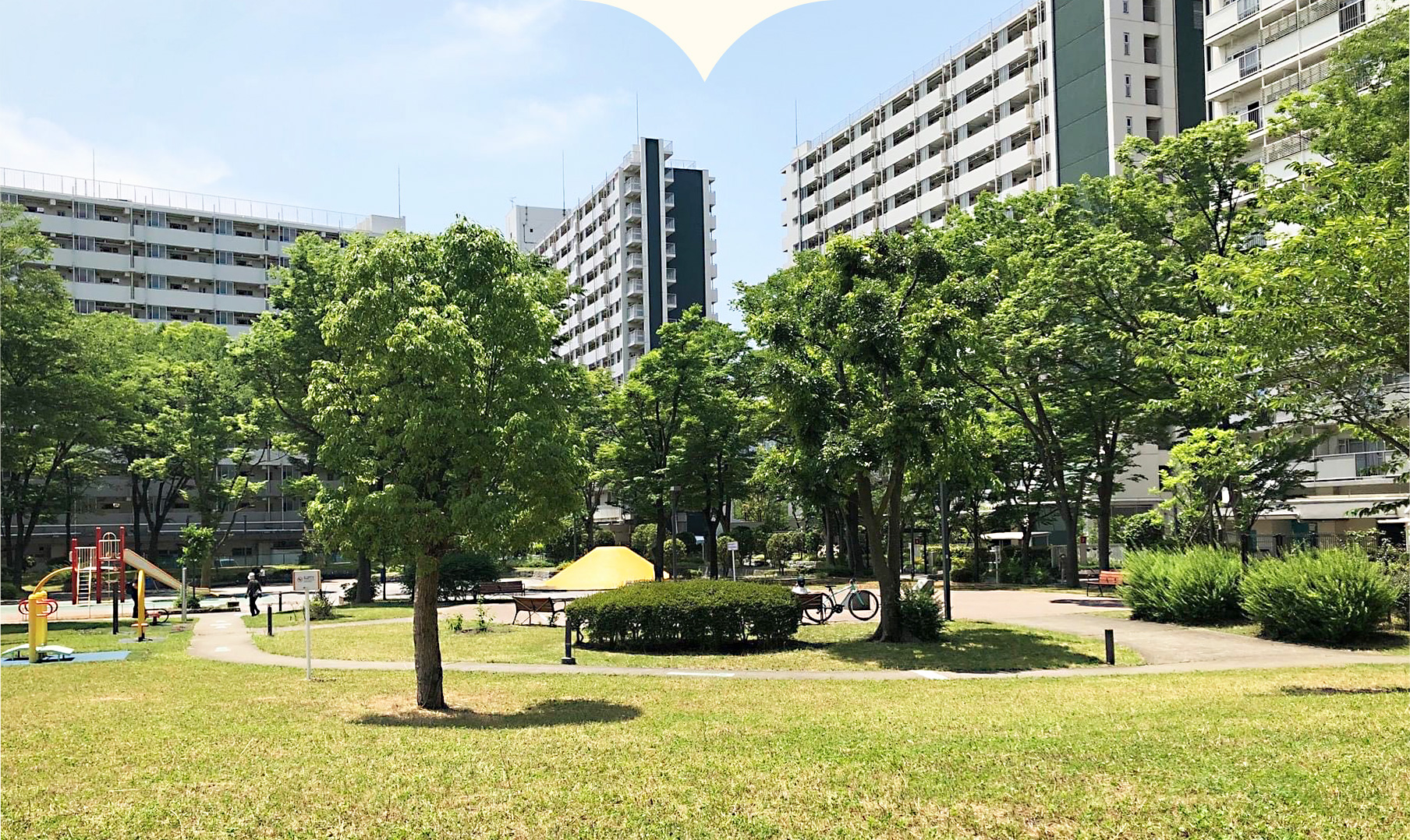今ではめずらしい個性的な住棟や、四季折々の自然、スーパー、郵便局などが揃い、歴史を重ねた団地ならではの、豊かな暮らしが叶います。